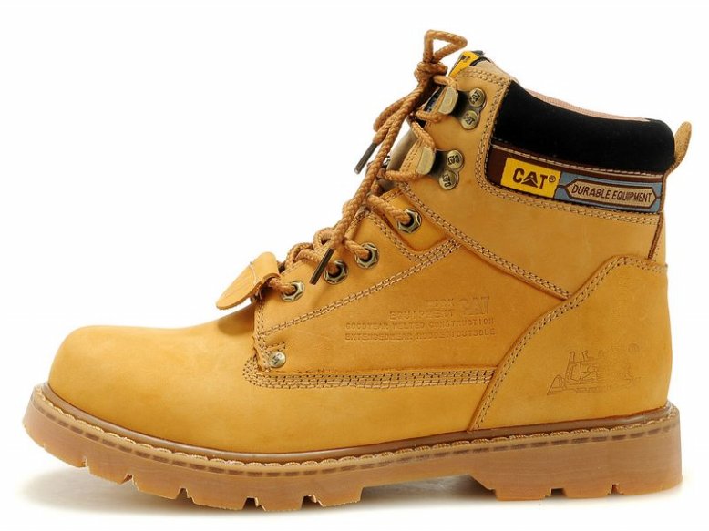 Bottes montantes unisexes à la mode dans le style de la marque Cat. Les chaussures ont un laçage classique, une sangle design et sont très confortables.