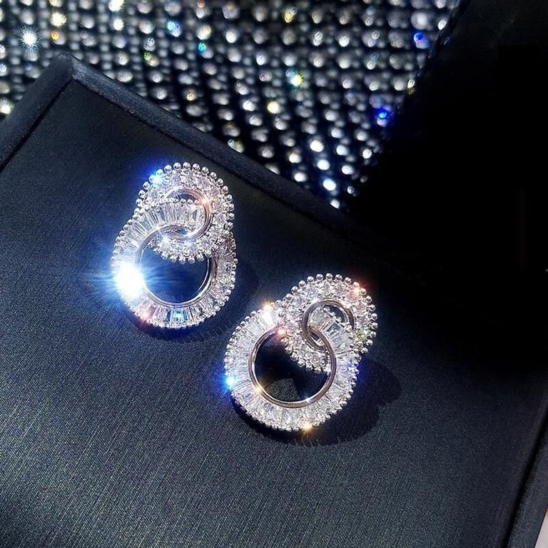 Boucles d'oreilles pendantes pour femmes avec des cercles entrelacés.