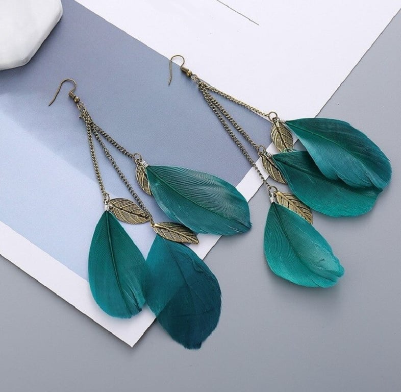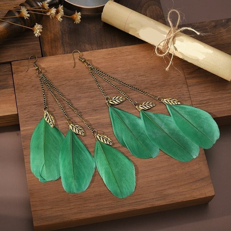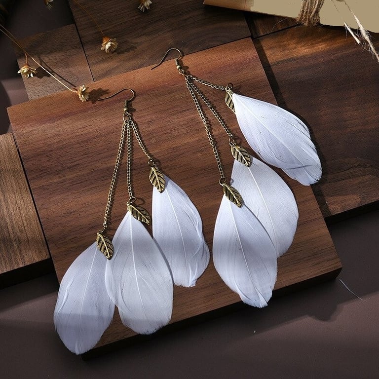 Boucles d'oreilles pendantes pour femmes avec plumes