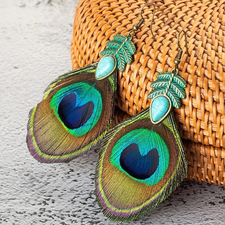 Boucles d'oreilles pendantes pour femmes avec plumes