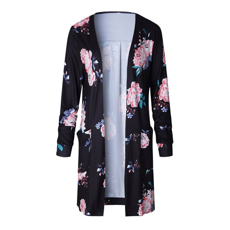 Cardigan léger pour femme / gilet à manches longues. Sans fermeture. Coupe ample et confortable. Imprimé floral délicat. Disponible en plusieurs variantes de couleurs.