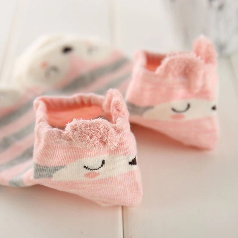 Les chaussettes ont des animaux brodés et un bord décoré d'oreilles.