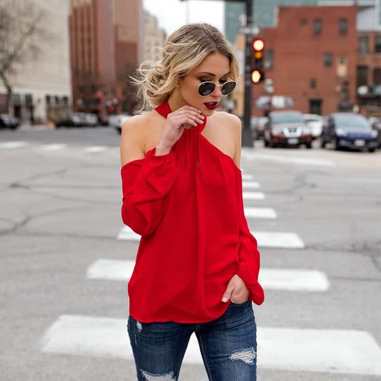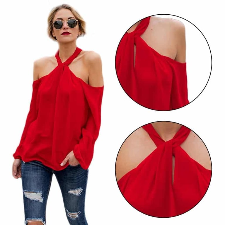 Blouse femme avec lien derrière le cou. Blouse femme avec lien derrière le cou
