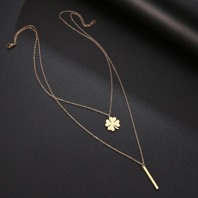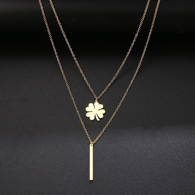 Collier double pour femme avec un trèfle à quatre feuilles