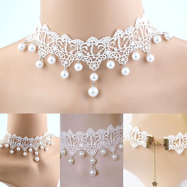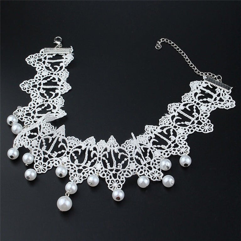 Choker en dentelle pour femmes avec perles
