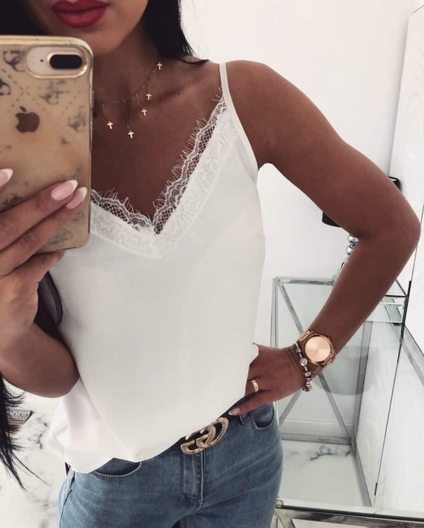 Débardeur blanc pour femme avec dentelle dans le dos. Débardeur blanc pour femme avec dentelle dans le dos