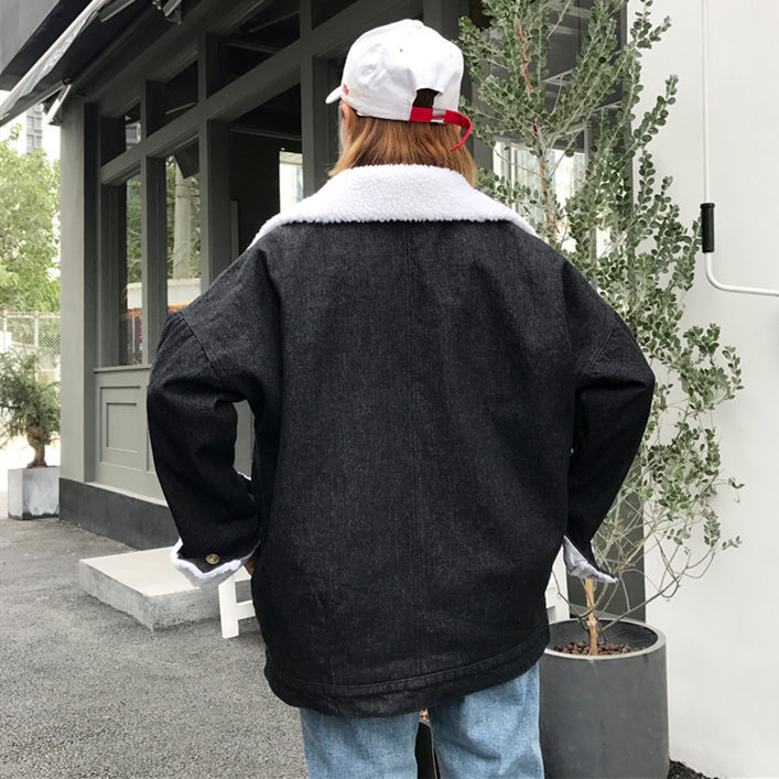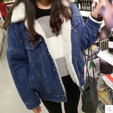 Une veste en jean avec une combinaison de fourrure d'agneau est une excellente tenue pour le temps froid.