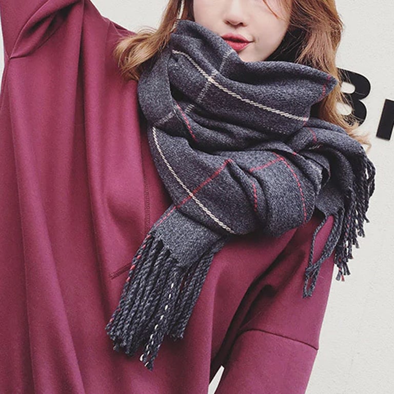 Écharpe chaude pour femme avec franges. Motif à carreaux. Dimensions 175 cm. Disponible en plusieurs coloris.