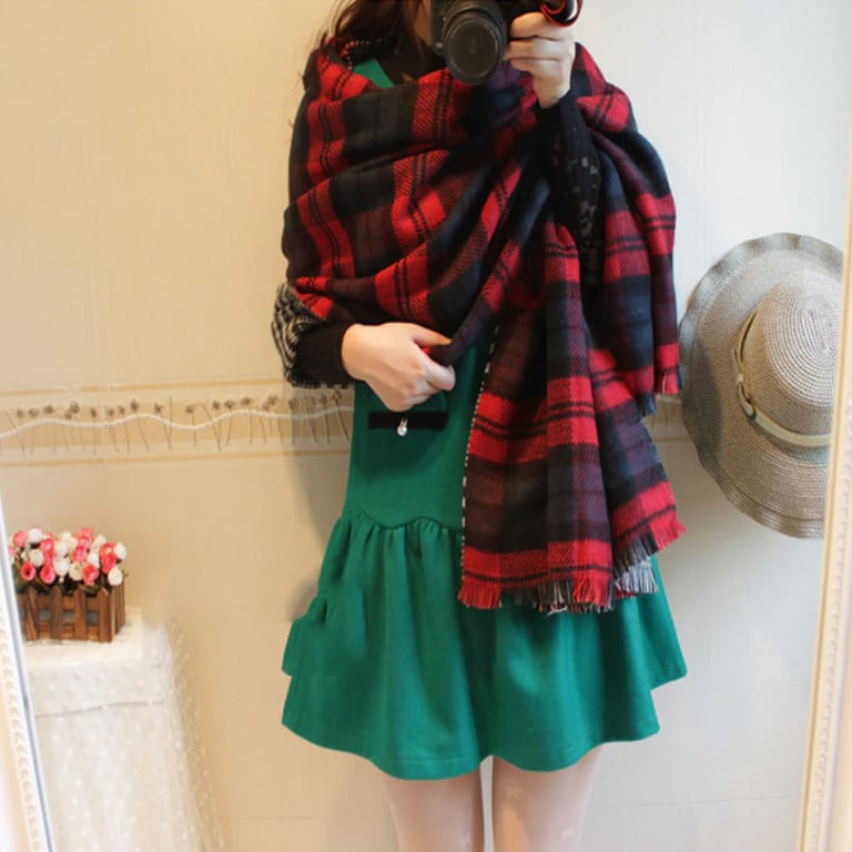 Écharpe stylée, qui dispose de deux motifs. Un plaid aux couleurs écossaises et un élégant motif à carreaux noir et blanc.