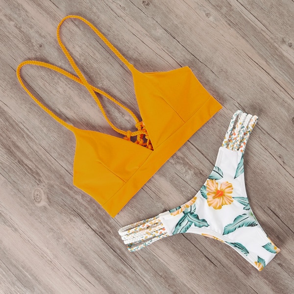 Magnifiques maillots de bain avec des tresses décoratives sur le bas. Vous pouvez choisir parmi différentes combinaisons de couleurs.
