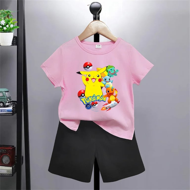 Ensemble d'été design pour enfants : T-shirt et shorts Pokémon.