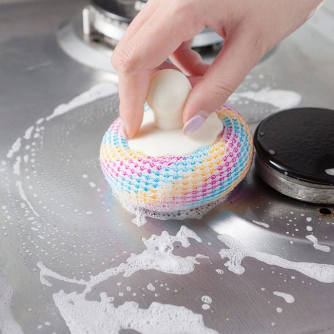 Grâce à son support, la brosse à récurer se tient confortablement et ne vous abîmera pas, par exemple, le vernis à ongles.
