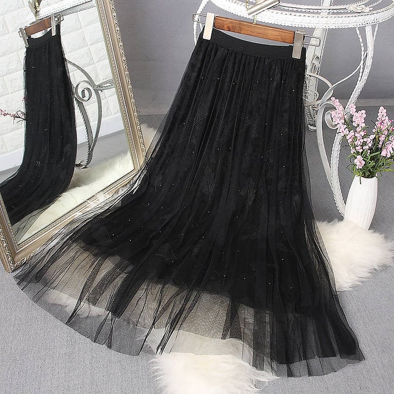 Jupe femme avec taille élastique. Coupe longue et ample avec broderie et jupon. Taille unique. Disponible en plusieurs coloris.