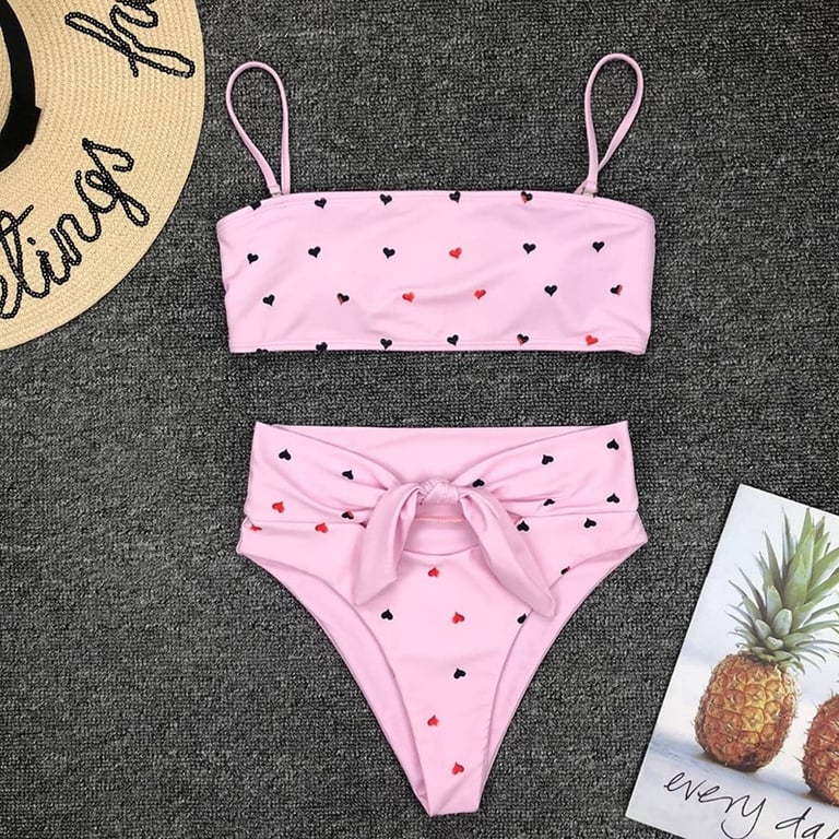 Maillots de bain roses pour femmes avec des cœurs. Maillots de bain roses pour femmes avec des cœurs