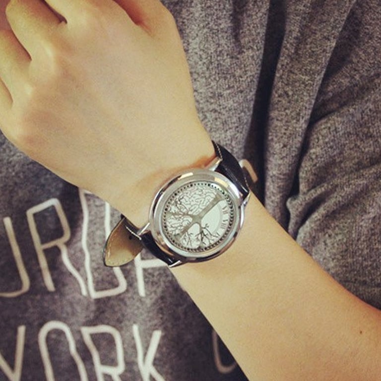 Montre élégante avec un motif d'arbre dans différentes couleurs.