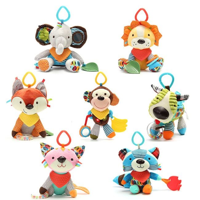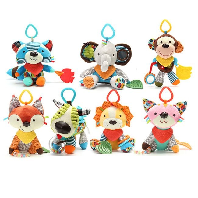 Jolis animaux en peluche pour bébés. Vous pouvez facilement suspendre le jouet, par exemple, dans la poussette ou au-dessus du lit. Les animaux sont magnifiquement colorés et plairont sûrement aux enfants.