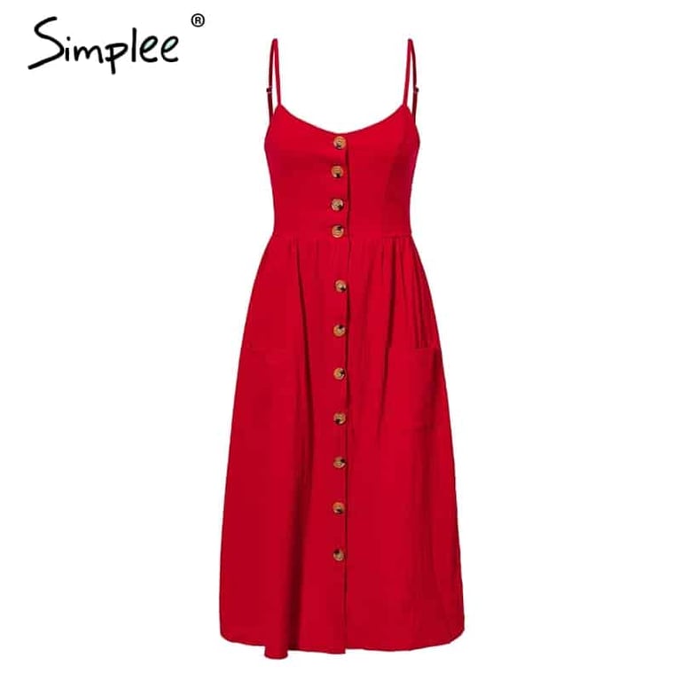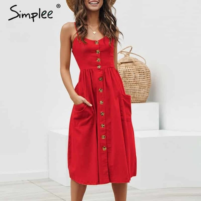 Robe d'été à boutons pour femmes avec poches et bretelles Simplee