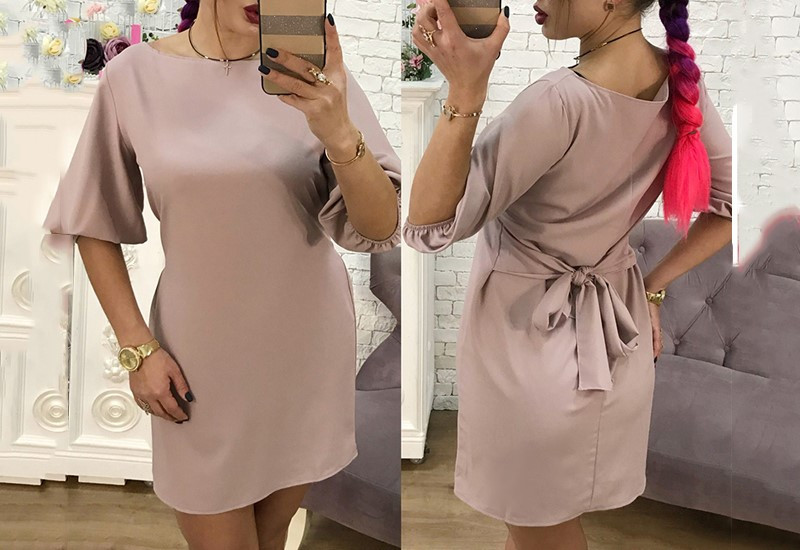 Robe femme à nouer dans le dos ou sur le ventre, manches ballons.
