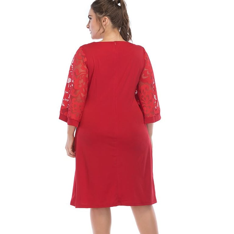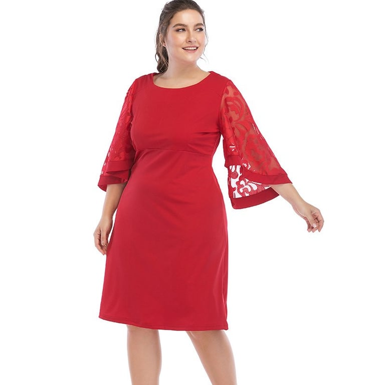 Robe de soirée pour femmes en grande taille, coupe ample avec décolleté rond et manches ornées. Disponible en trois coloris.