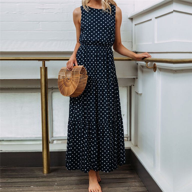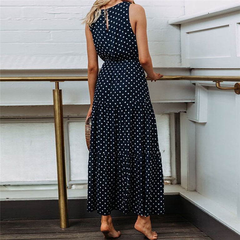 Robe femme en bleu marine avec des pois blancs.