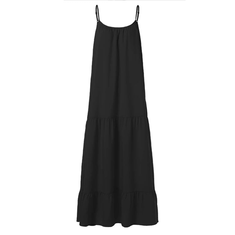 Robe maxi pour femme à bretelles. Encolure ronde avec fronces. Coupe longue et ample. Disponible en plusieurs coloris.