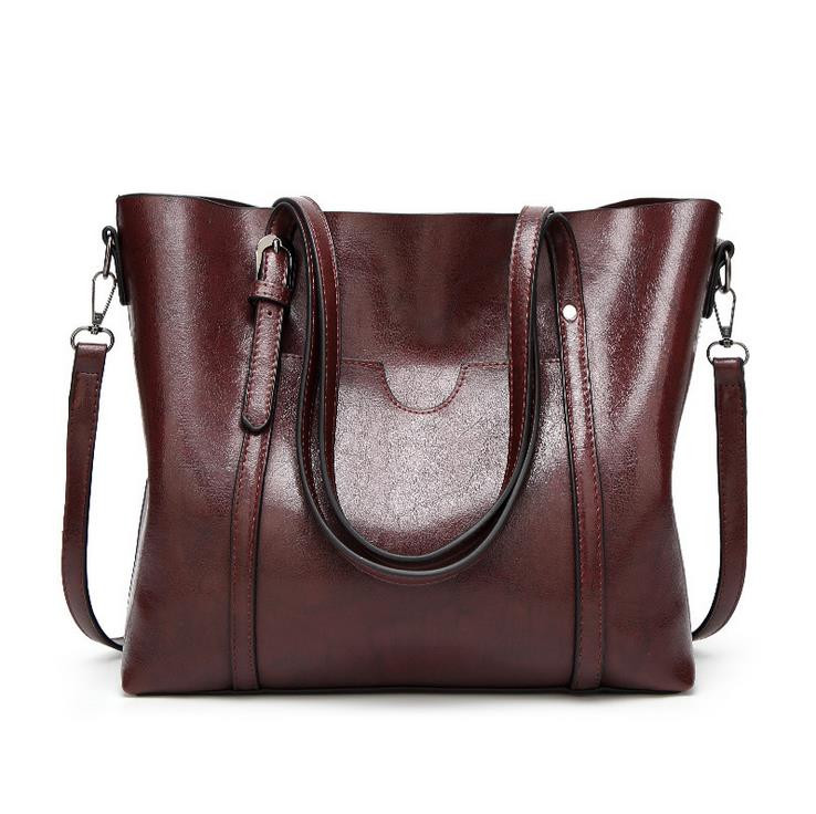 Grand sac à main pour femme à porter à la main ou à l'épaule avec une longue bandoulière supplémentaire. Le sac se ferme par une fermeture éclair, possède plusieurs poches à l'intérieur et une poche à l'extérieur.