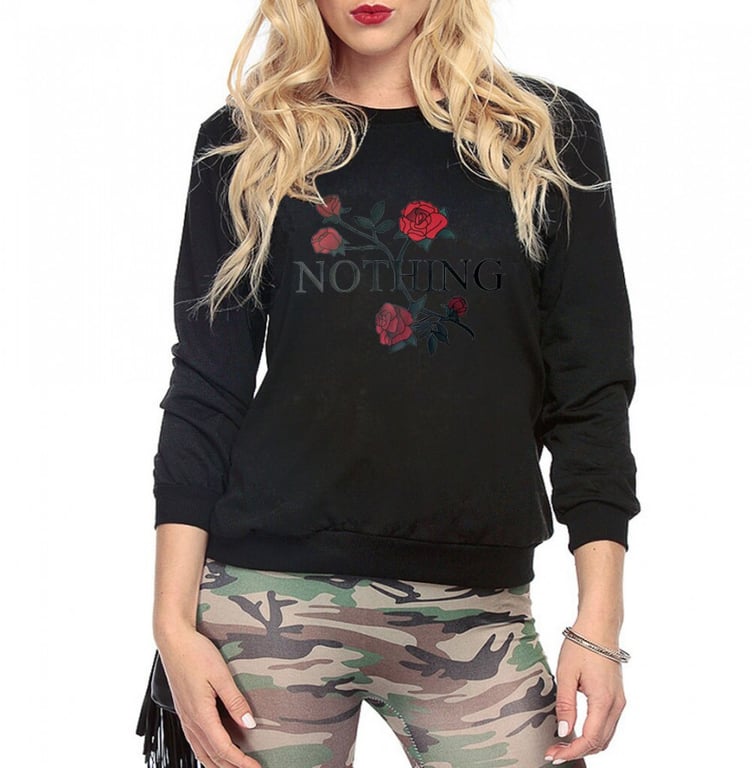 Pull femme avec impression colorée sur le devant. Le pull a un col rond et une taille élastique. Disponible en plusieurs variantes de couleurs.