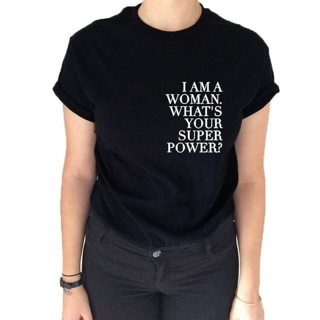 T-shirt pour femmes avec un message anglais explicite. Le tableau des tailles indique les mesures du produit, et non du corps.