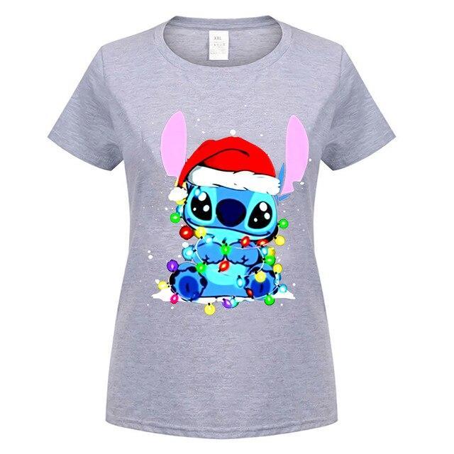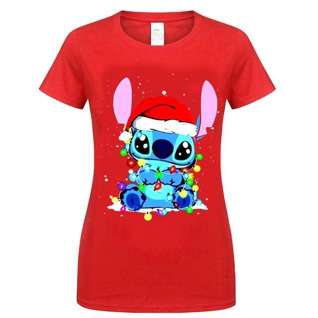 T-shirt en coton pour femme avec un imprimé de Stitch sous la forme du Père Noël. Idéal comme cadeau de Noël.