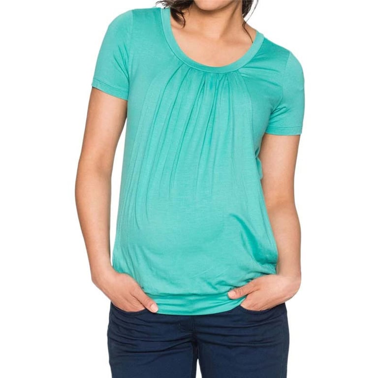T-shirt que vous pouvez porter confortablement pendant la grossesse et qui sera également utile après la naissance du bébé, car il est adapté à l'allaitement. Il vous suffit de déplacer une partie du t-shirt et il n'est pas nécessaire de se déshabiller.