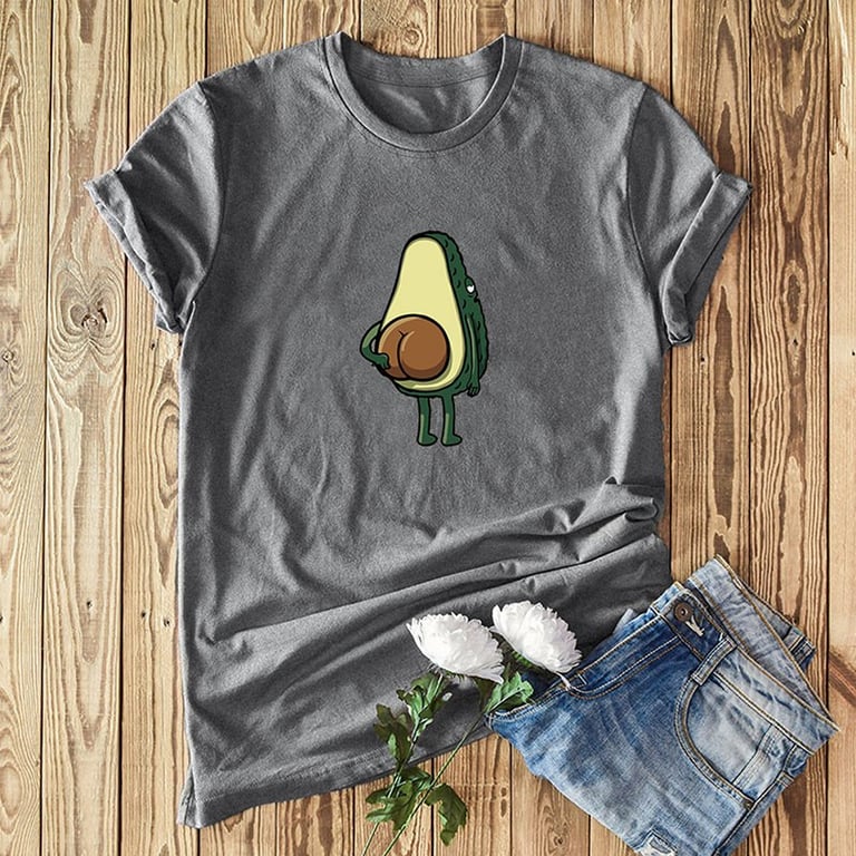 T-shirt pour femme avec un imprimé original d'avocat dévoilé. Le t-shirt a un col rond, des manches courtes et une coupe droite et ample. Disponible en grandes tailles et dans plusieurs variantes de couleurs.