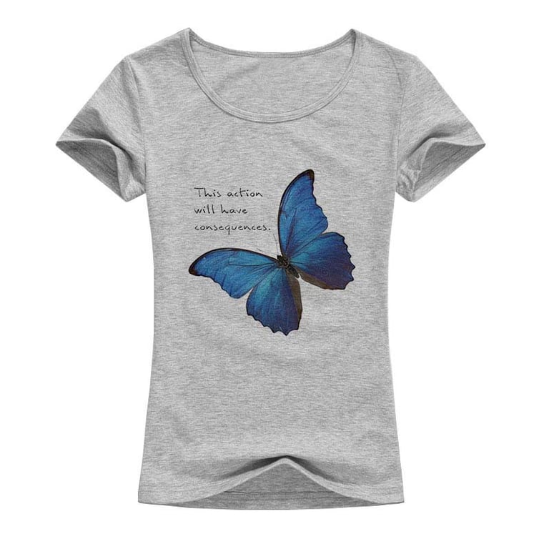 T-shirt stylé pour femmes avec un papillon, idéal pour le printemps et l'été. La combinaison agréable de couleurs illuminera toute votre tenue et vous aurez vraiment l'air superbe. Préparez-vous pour la saison 2025.