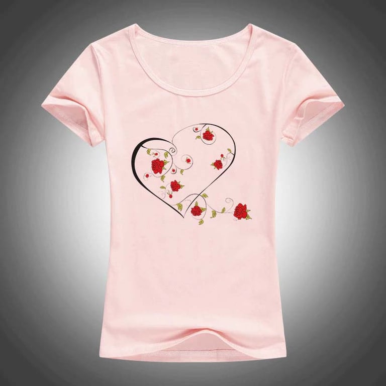 T-shirt féminin stylé avec un motif de cœur et de fleurs, adapté à de nombreuses occasions. Soyez à l'aise tout en restant tendance ! La livraison est gratuite chez nous.