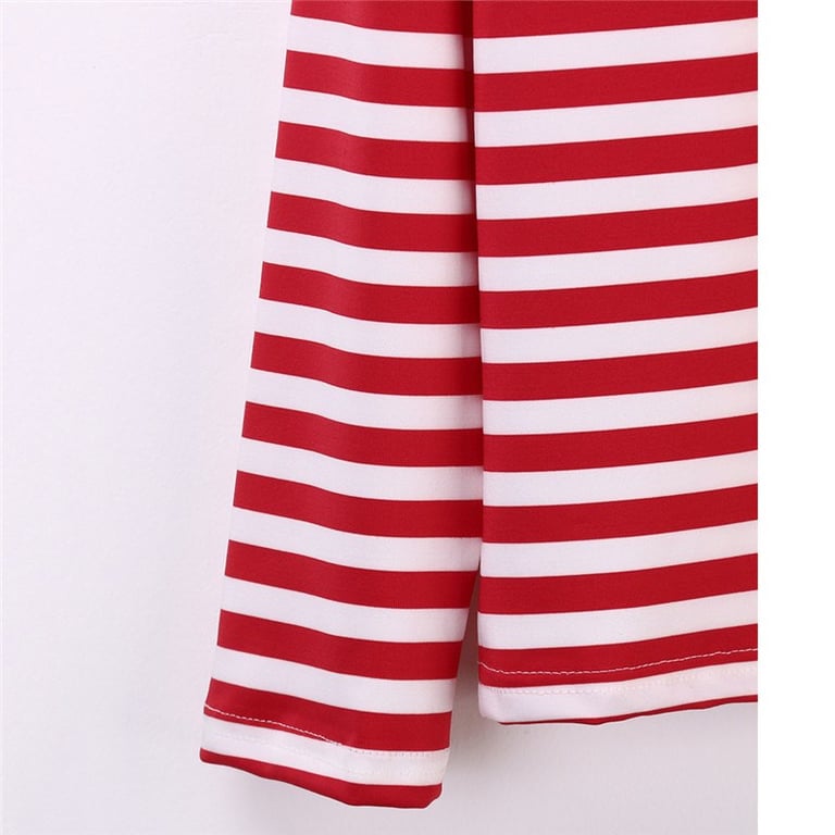T-shirt femme à manches longues et col rond. Le t-shirt a une coupe ample et un motif rayé rouge et blanc. Matière confortable et agréable.