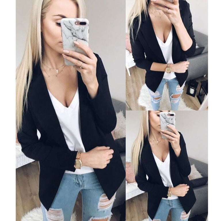 Veste élégante pour femme avec revers. Coupe ample sans fermeture. Disponible en deux variantes de couleur.