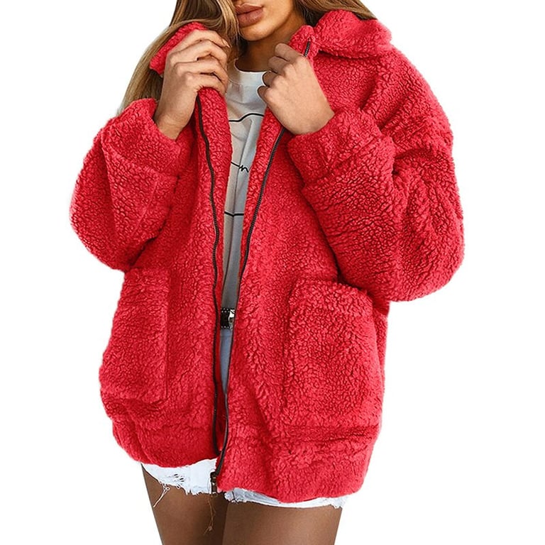 Veste chaude pour femme avec col et fermeture éclair. Coupe longue et ample. Grandes poches latérales. Disponible en plusieurs coloris.