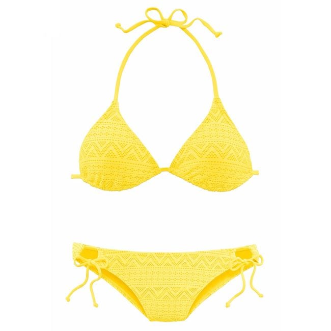 Le bikini a une coupe classique, une belle couleur et un motif discret, et vous vous sentirez très confiante en le portant.