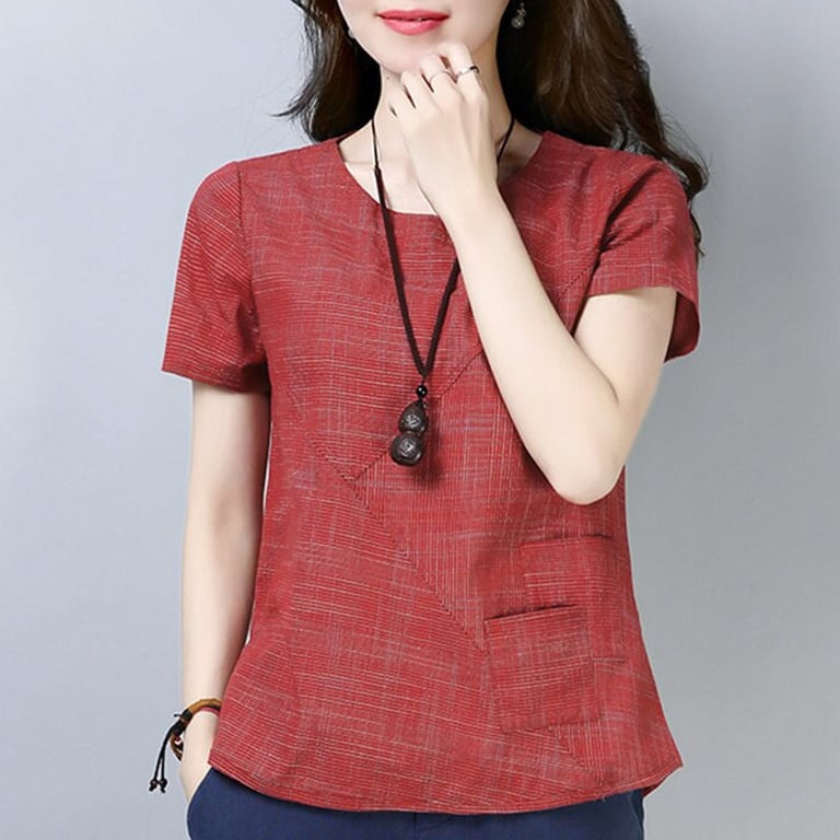Blouse femme à manches courtes et décolleté rond. Coupe droite et ample avec un motif délicat. Plusieurs variantes de couleurs.