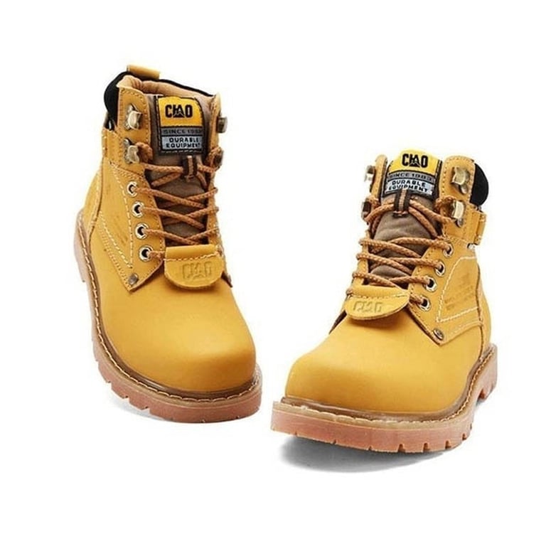 Bottes montantes unisexes à la mode dans le style de la marque Cat. Les chaussures ont un laçage classique, une sangle design et sont très confortables.