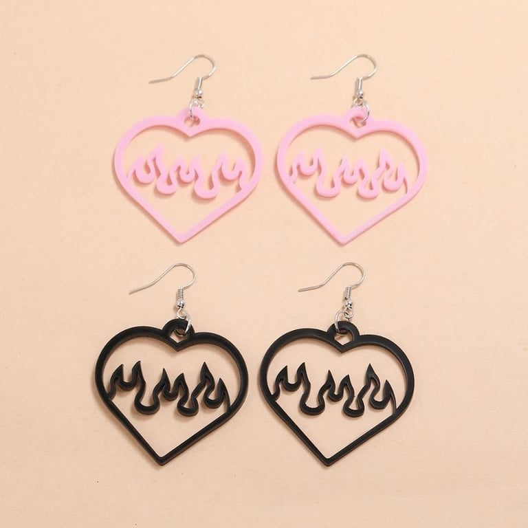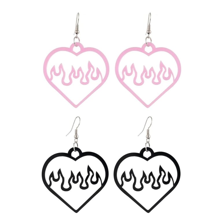 Boucles d'oreilles pendantes pour femmes cœur et feu 2 paires