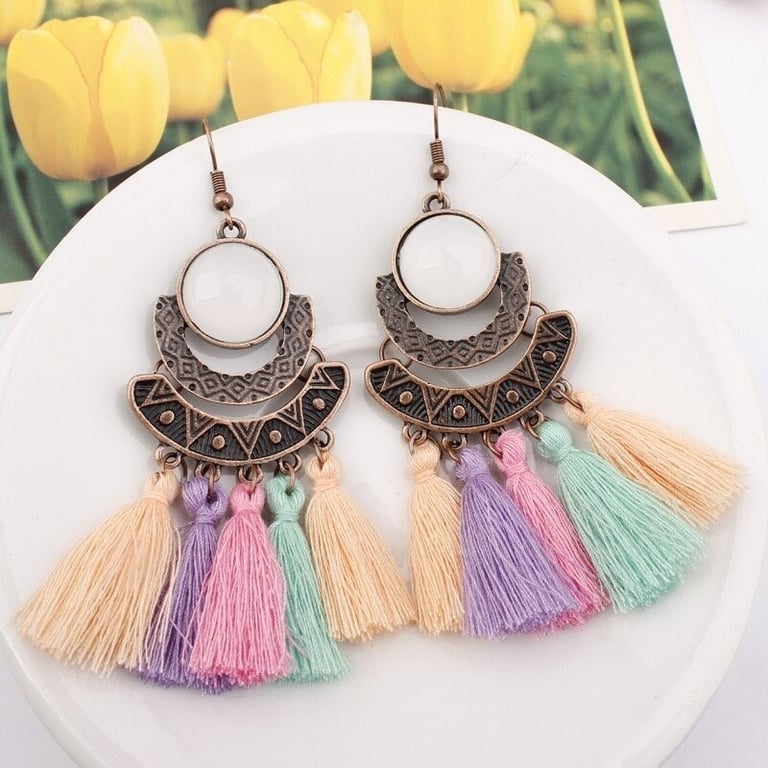 Boucles d'oreilles pendantes pour femmes avec frange