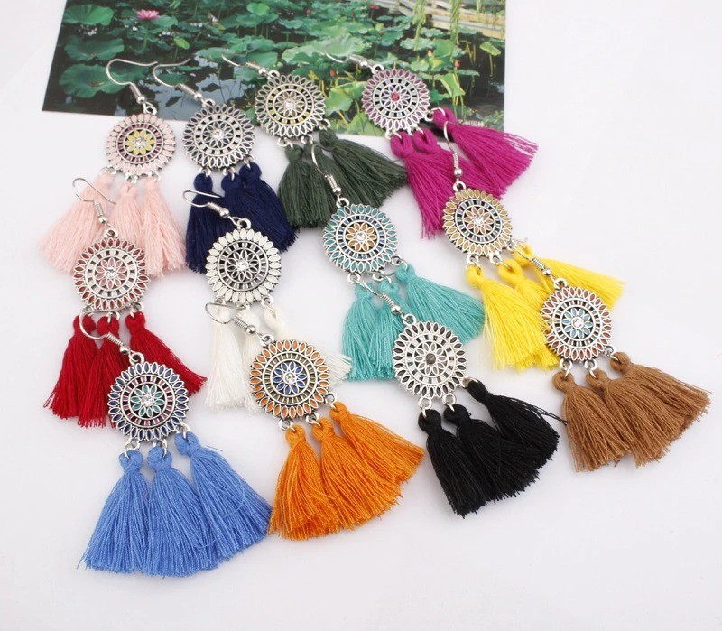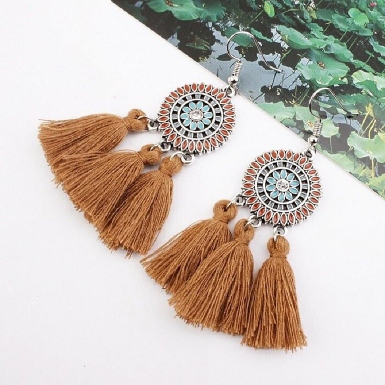Boucles d'oreilles pendantes pour femmes avec frange