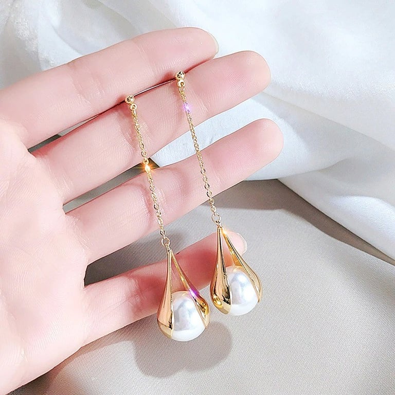 Boucles d'oreilles pendantes pour femmes avec perle