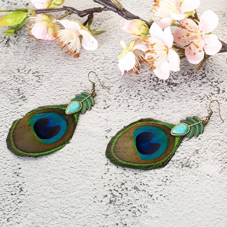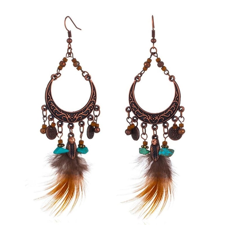 Boucles d'oreilles pendantes pour femmes avec plumes
