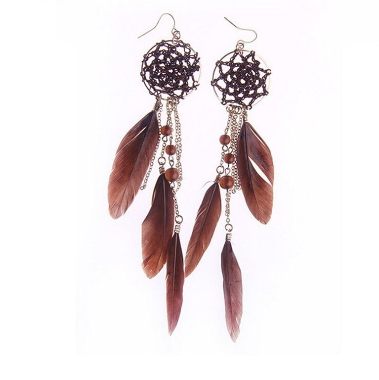 Boucles d'oreilles pendantes pour femmes avec plumes