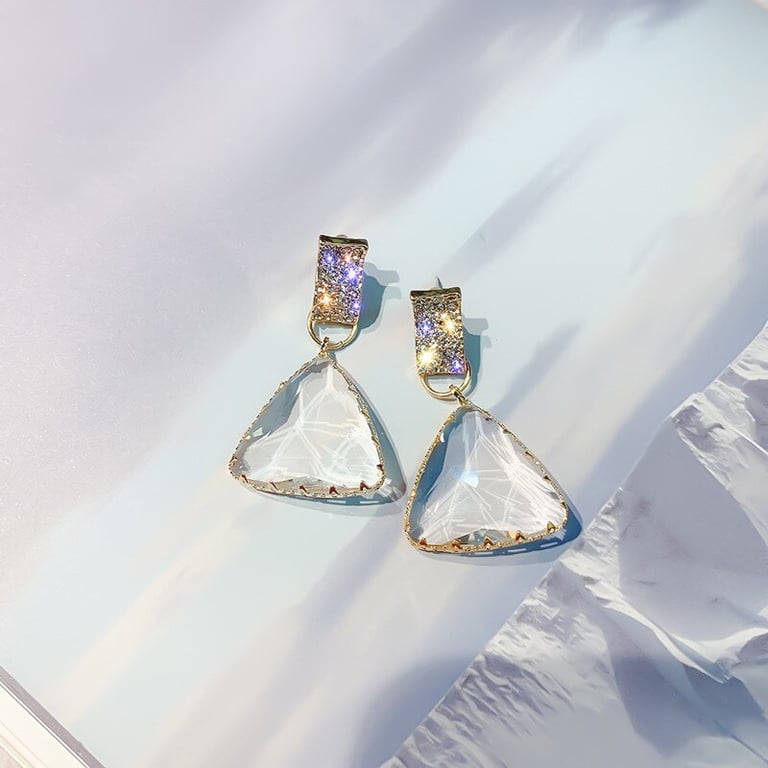 Boucles d'oreilles pendantes pour femmes ornées de petits pierres scintillantes et de plus grandes pierres transparentes.