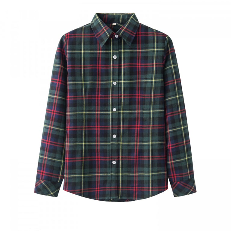 Chemise pour femme avec col et manches longues. La chemise se ferme avec des boutons et présente un motif à carreaux. Disponible en plusieurs coloris.
