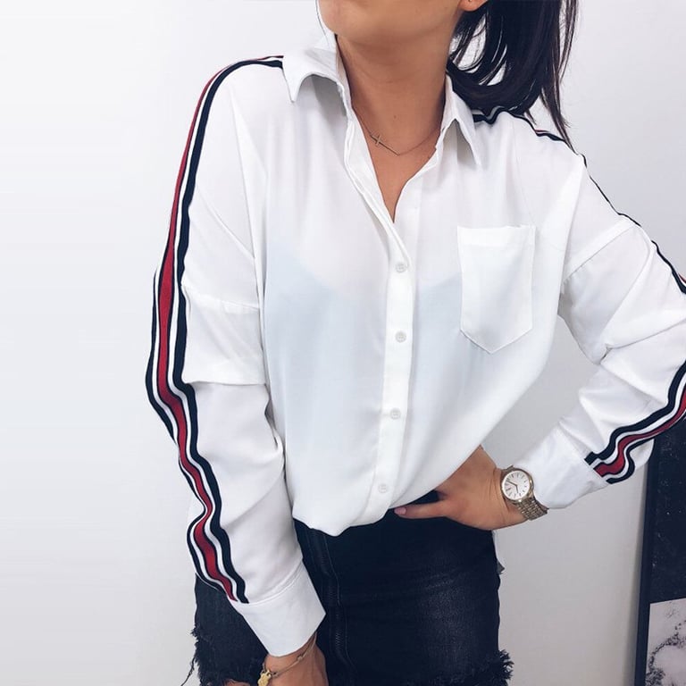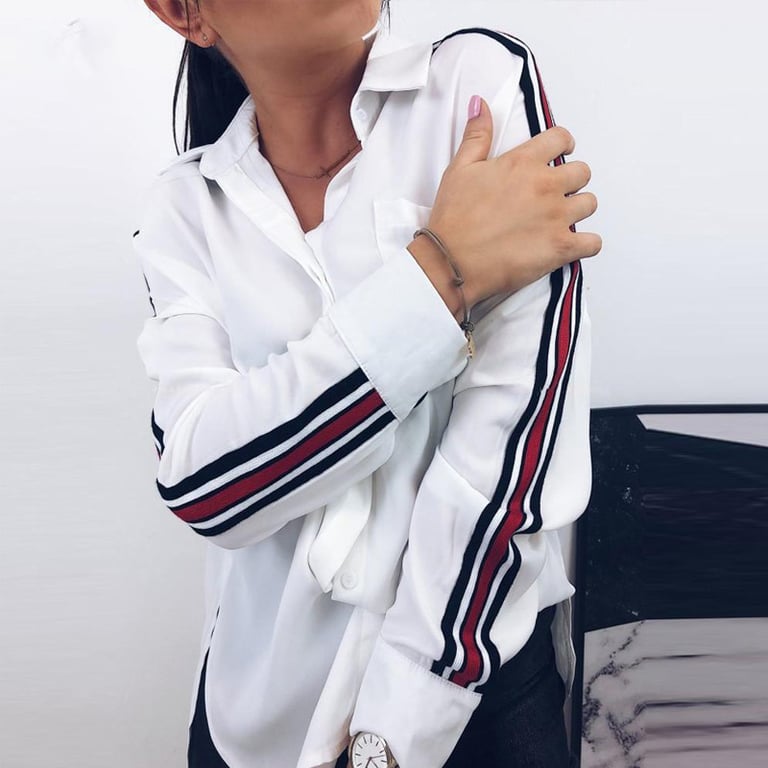 Chemise élégante pour femme avec des rayures stylées sur les manches.