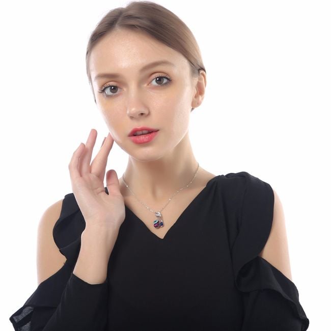 Collier pour femme avec une feuille et des pierres en forme de gouttes d'eau.