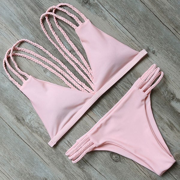 Magnifiques maillots de bain avec des tresses décoratives sur le bas. Vous pouvez choisir parmi différentes combinaisons de couleurs.